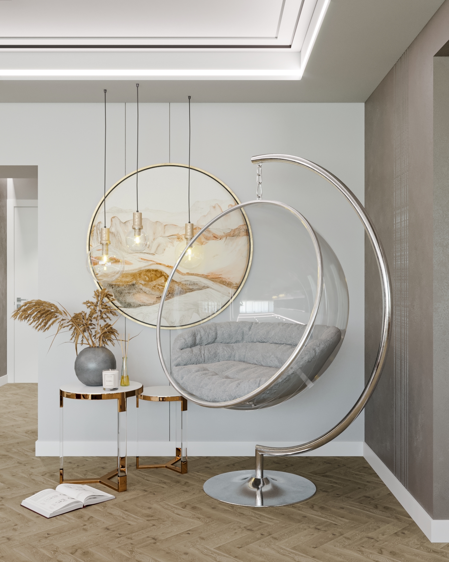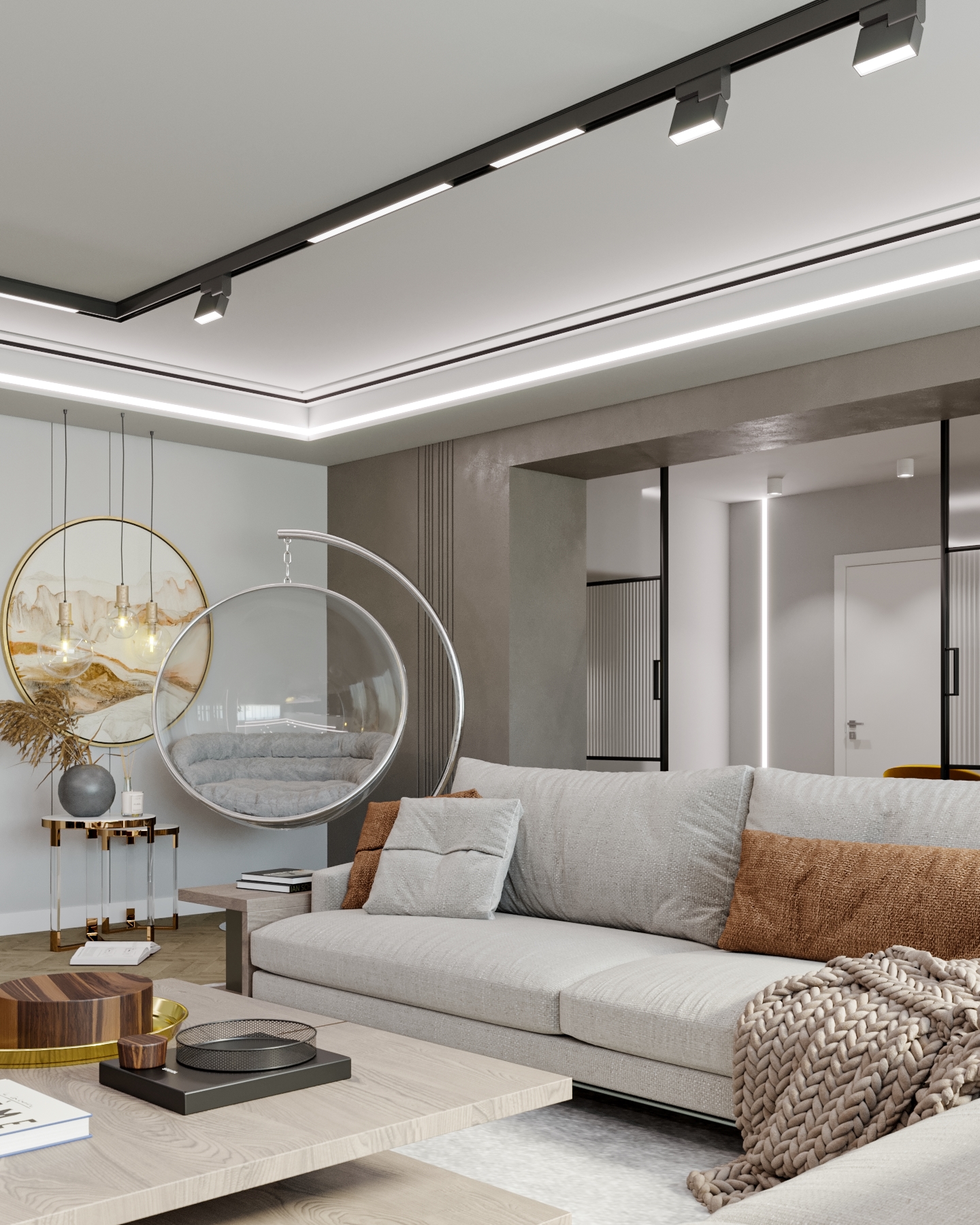 Небольшая площадь гардеробной комнаты зачастую становится слишком темной, поэтому необходимо предусмотреть достаточное количество источников света на небольшой территории. В нашем случае это как естественный, так и искусственный свет.