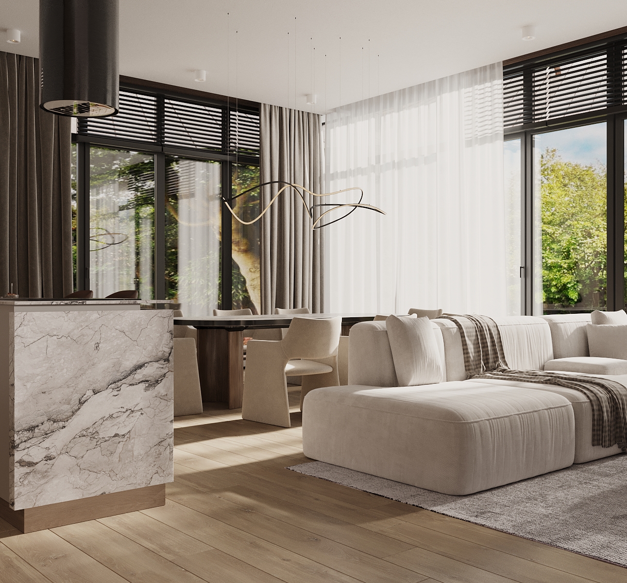 Данный проект — идеальное сочетание простора и воздушности. Интерьер наполнен элегантной простотой и утонченностью. Светлые оттенки и минималистичный дизайн создают ощущение лёгкости и свободы, позволяя каждому элементу «дышать».